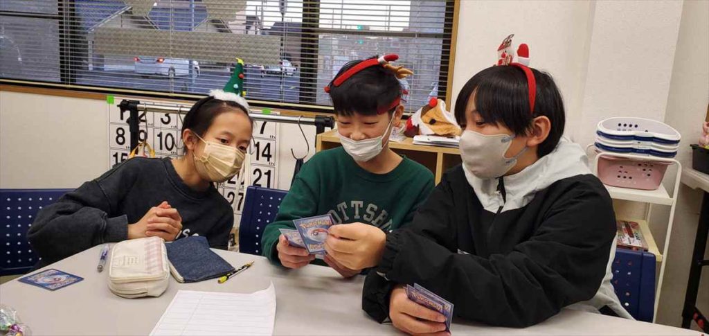 プレゼント交換、キャンディレイ作り、クリスマスカード作成、宝探し、ポケモンバトルなどなど。